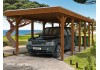 Přístřešky Skan Holz Friesland jako klasická ochrana proti povětrnostním vlivům pro vaše auto z impregnovaného dřeva jehličnatého stromu. Přístřešky Friesland mají sloupky o rozměru 11,5 x 11,5 cm včetně kotevních patek ve tvaru písmene H k zabetonování. Střešní krytina je ze silného střešního obložení s fólií EPDM. Zakončení střechy je z dřevěného profilu s hliníkovou zakončovací hranou. Spád je dozadu. Kompletní balení s montážním materiálem a montážním návodem.