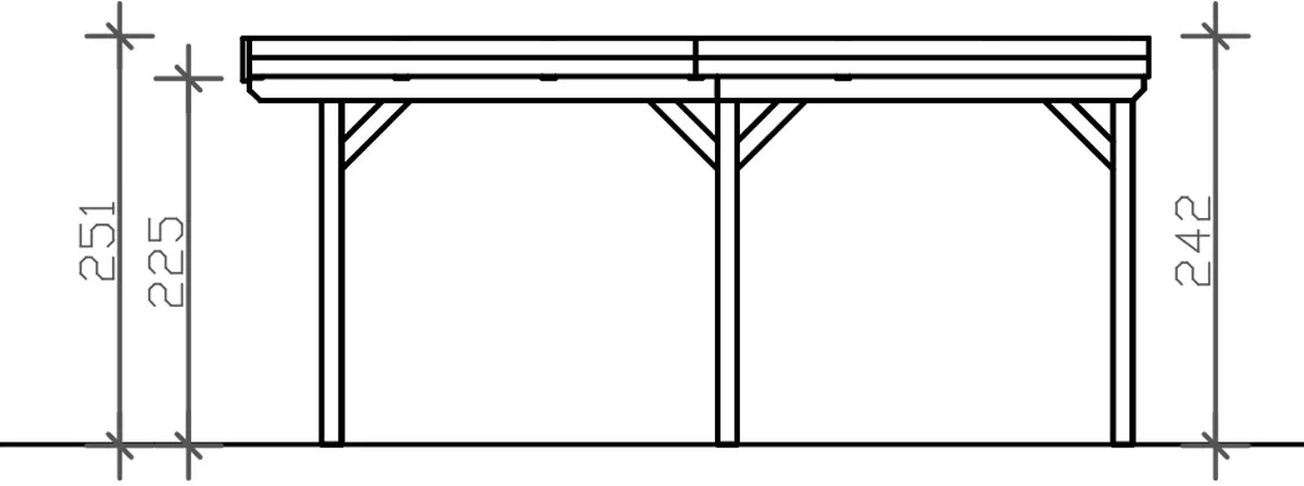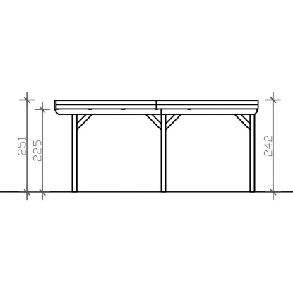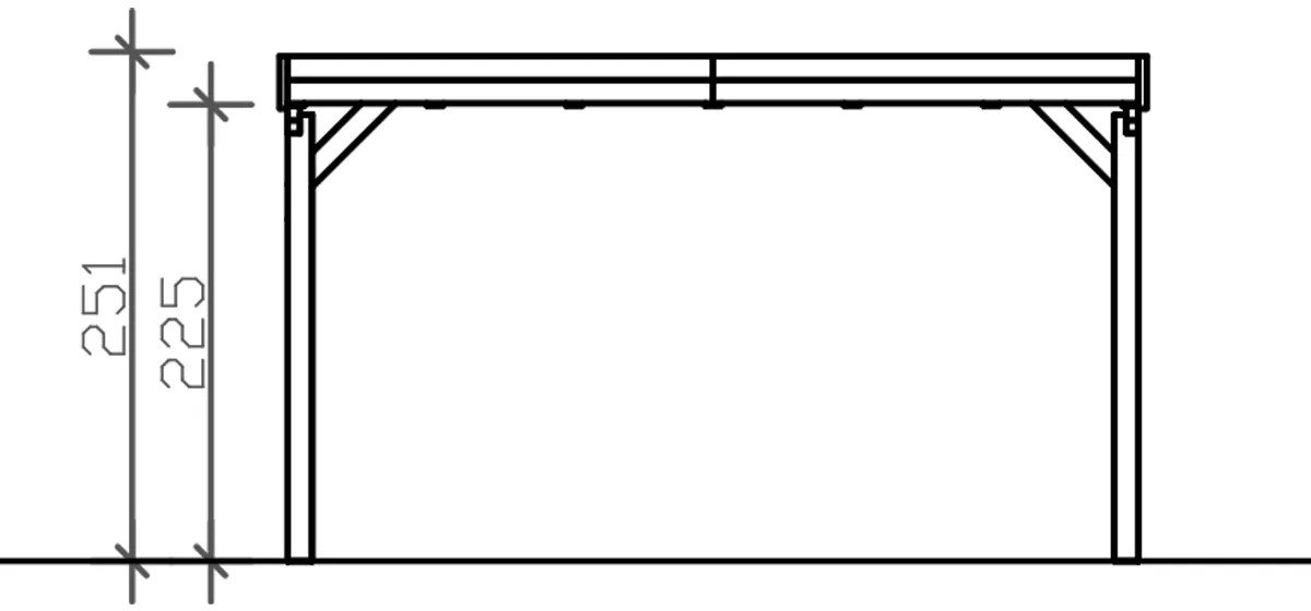 Přístřešky na auto Skan Holz Grunewald jsou vyrobeny z vysušeného smrkového dřeva lepeného v několika vrstvách. Tato směs je odolnější proti povětrnostním vlivům a je méně náchylná k praskání než přirozené dřevo. Sloupky přístřešku o rozměru 12 x 12 x 220 cm jsou dodávány včetně ukotvení ve tvaru písmene H. 60 cm dlouhé H-kotvy jsou vyrobeny z pozinkované ploché oceli k zabetonování do vlastního bodového základu. Kotvy pevně spojují sloupky s podkladem a zaručují vysokou stabilitu. Plochá střecha přístřešku je k dispozici ve dvou variantách - z hliníkových panelů (horní strana antracitová, spodní strana světle šedá) s trapézovým profilem (ALU) nebo s 19 mm střešním bedněním s perodrážkou s dostatečným množstvím EPDM fólie. Střešní krytina z hliníkových panelů je nerozbitná a odolná proti kroupám, může být ale hlučná při dešti. Je vysoce stabilní a tvarově stálá i při vysokých povrchových teplotách. Střecha je dodávána s plastovými svody.