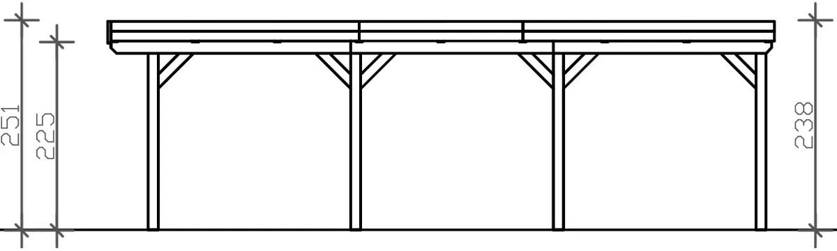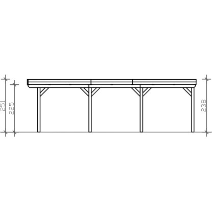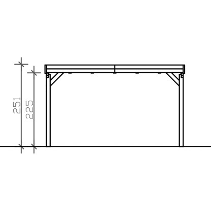 Přístřešky na auto Skan Holz Grunewald jsou vyrobeny z vysušeného smrkového dřeva lepeného v několika vrstvách. Tato směs je odolnější proti povětrnostním vlivům a je méně náchylná k praskání než přirozené dřevo. Sloupky přístřešku o rozměru 12 x 12 x 220 cm jsou dodávány včetně ukotvení ve tvaru písmene H. 60 cm dlouhé H-kotvy jsou vyrobeny z pozinkované ploché oceli k zabetonování do vlastního bodového základu. Kotvy pevně spojují sloupky s podkladem a zaručují vysokou stabilitu. Plochá střecha přístřešku je k dispozici ve dvou variantách - z hliníkových panelů (horní strana antracitová, spodní strana světle šedá) s trapézovým profilem (ALU) nebo s 19 mm střešním bedněním s perodrážkou s dostatečným množstvím EPDM fólie. Střešní krytina z hliníkových panelů je nerozbitná a odolná proti kroupám, může být ale hlučná při dešti. Je vysoce stabilní a tvarově stálá i při vysokých povrchových teplotách. Střecha je dodávána s plastovými svody.