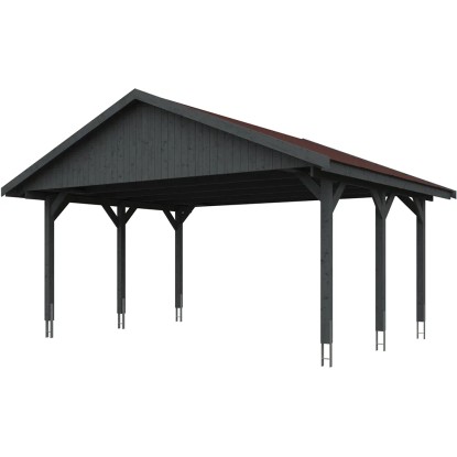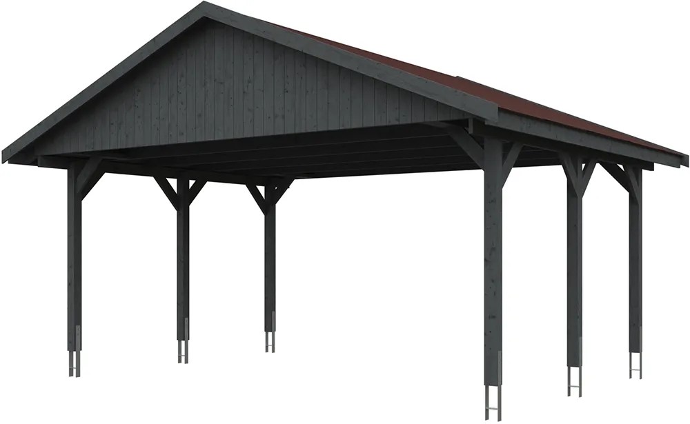 Skan Holz Přístřešek na auto Wallgau břid.-šedý, červené šindele, 620 x 500 cm