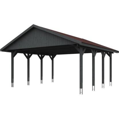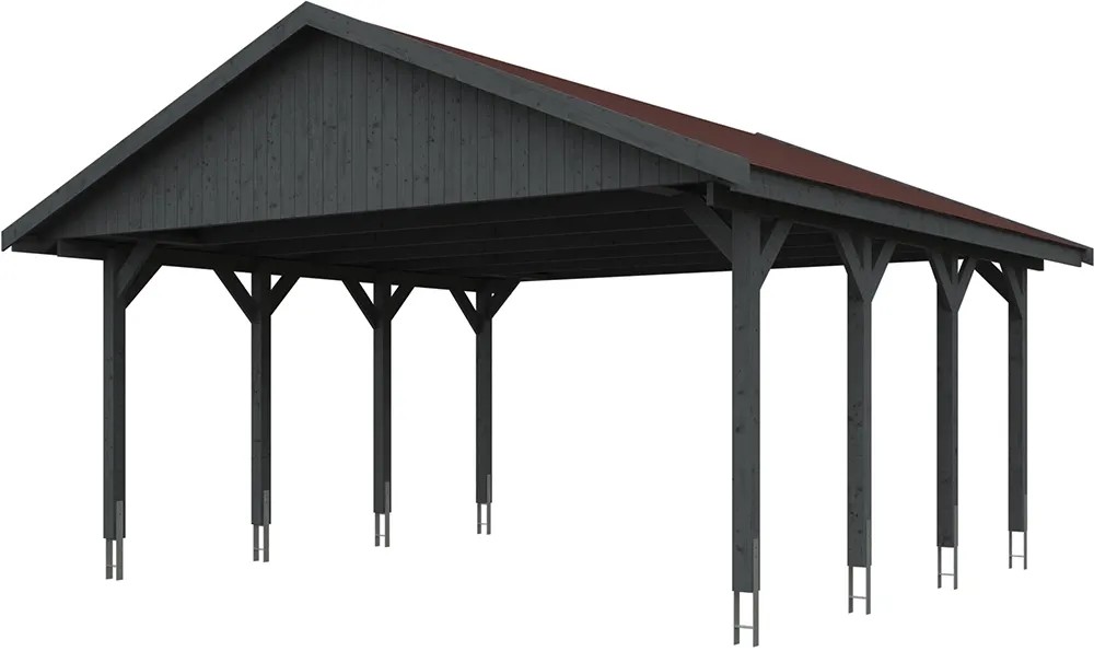 Skan Holz Přístřešek na auto Wallgau břid.-šedý, červené šindele, 620 x 600 cm