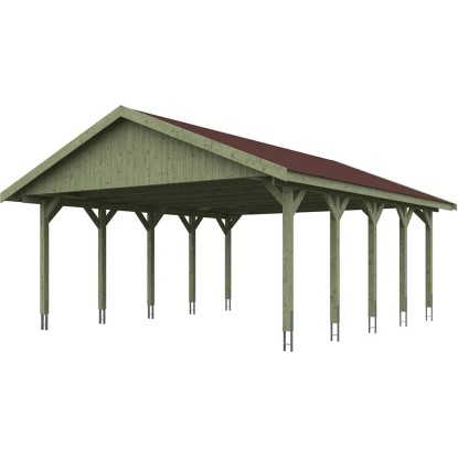 Skan Holz Přístřešek na auto Wallgau zelený, červené šindele, 620 x 750 cm
