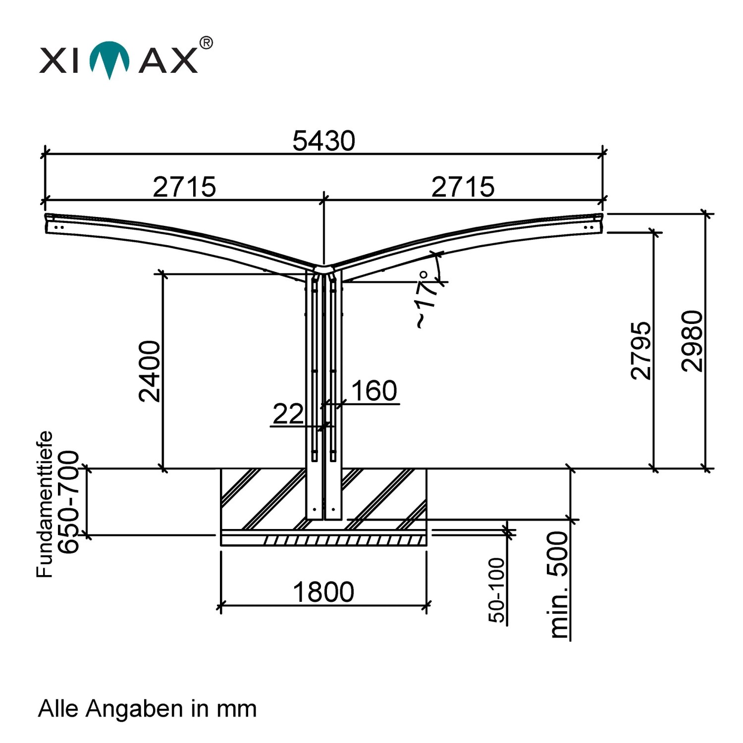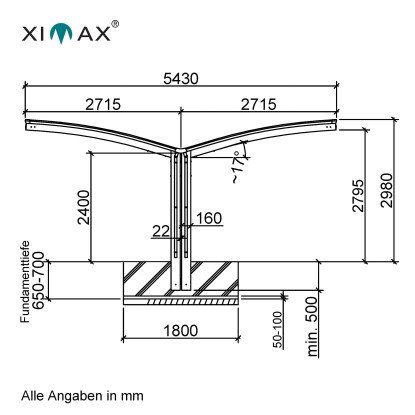 Ximax Alu přístřešek na 2 auta Portoforte Typ 80-Y vzhled oceli 543 x 495 cm