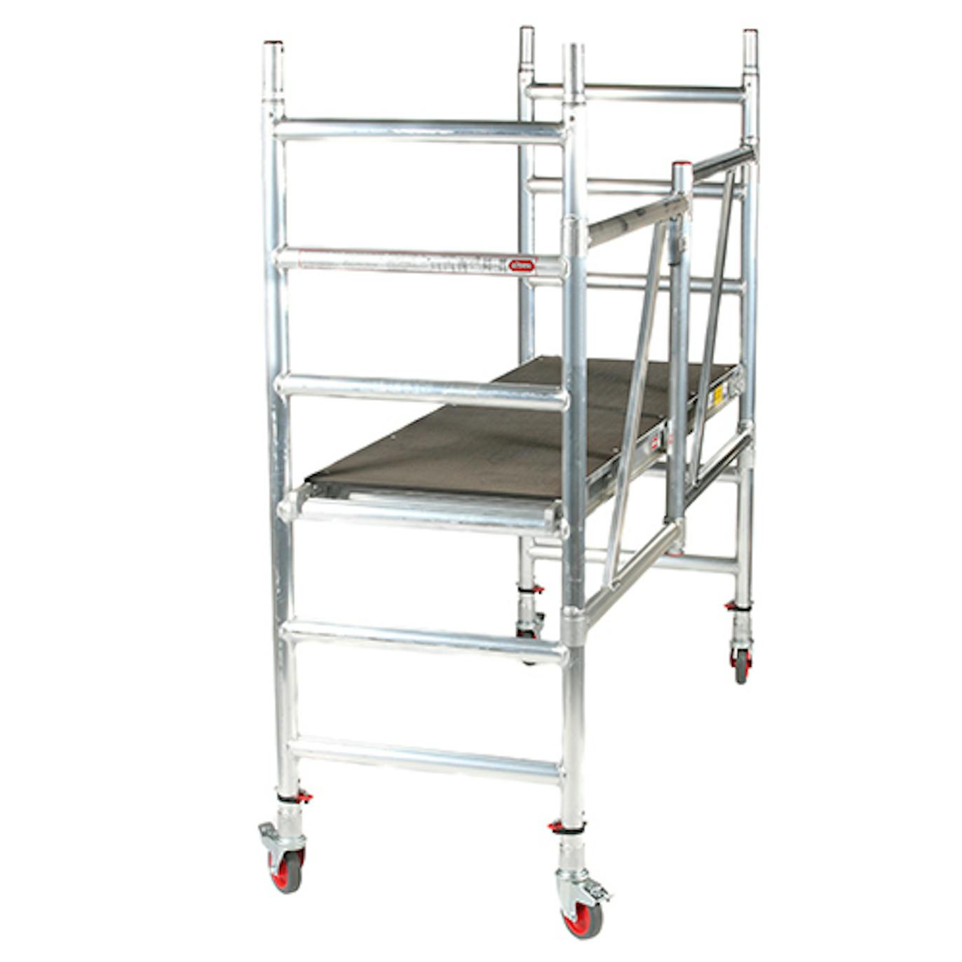 Toto skládací pojízdné pokojové lešení je možné jednoduše postavit a je velice lehké a kompaktní. Pracovní výška je nastavitelná až do 3 metrů. Je vhodné na různé pracovní činnosti uvnitř domu, jako je například malování a tapetování.