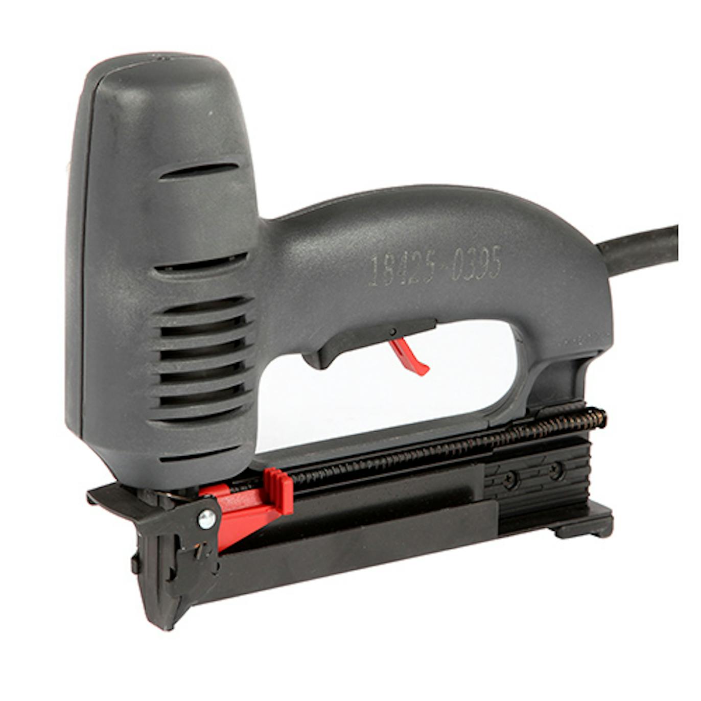 Sponkovač 25 mm je vhodný pro upevnění palubek, sádrokartonu, stropních dlaždic a skleněných výplní. Přístroj má nastavitelnou sílu úderu a má možnost zpětného úderu.