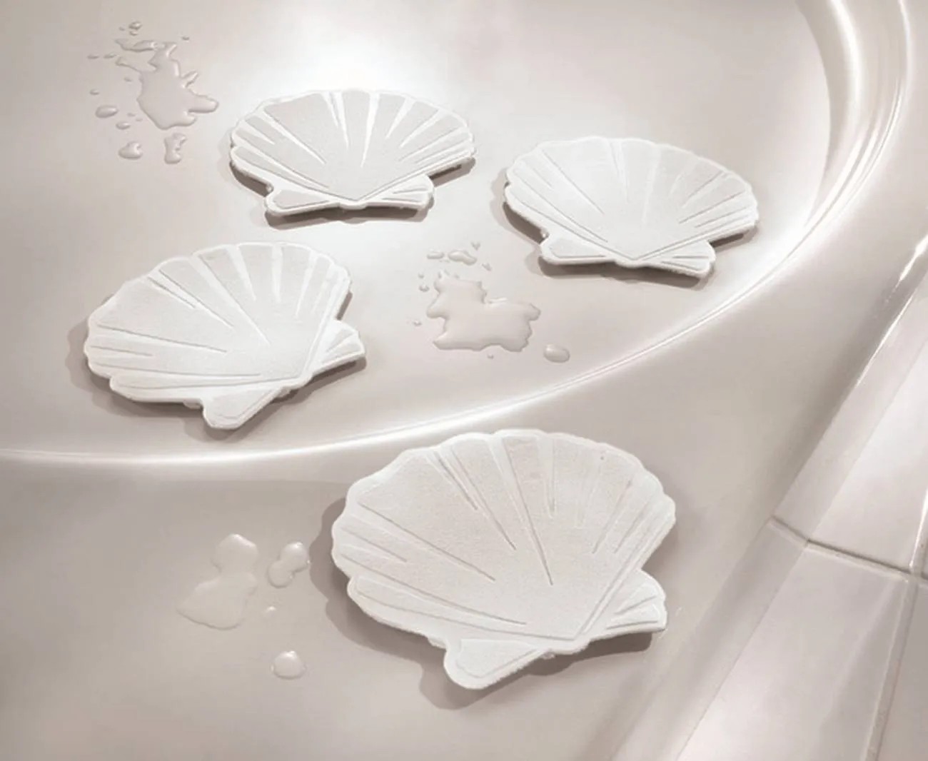 Tyto malé bílé mušle přinášejí do vaší koupelny radost. Díky silným přísavkám je můžete umístit kamkoli a dobře drží. Ať už je umístíte na vnitřní stěnu vany, jako protiskluzové podložky do sprchy nebo jen jako roztomilou dekoraci na obkladačky v koupelně, určitě naleznete hezké místo. Při použití jako podložka se miniatury vyznačují vyváženým poměrem mezi pohodlím a bezpečím. Sada obsahuje 6 ks. Objevte i další miniatury v pěkných, osvěžujících barvách.