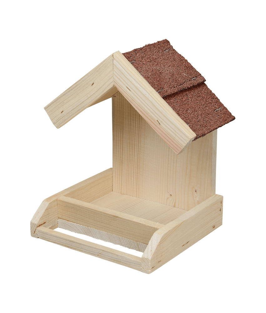 Dřevěné krmítko se závěsným uchem pro umístění na zahradu či na balkón.