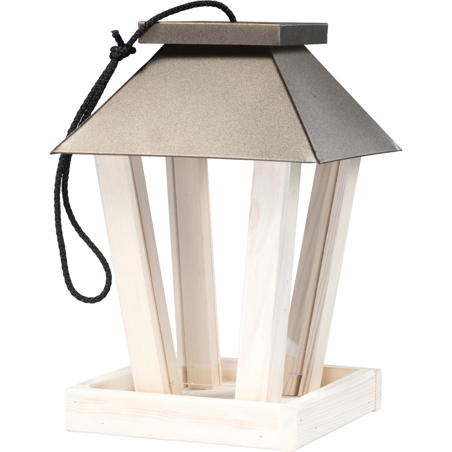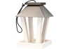 S tímto krmítkem lze malým až středně velkým volně žijícím ptákům poskytnout potravu na zahradě, v zimě na balkoně nebo na terase. Tvar lucerny krmné stanice umožňuje zrnům a semenům plynulé dávkování. Přívod krmiva je regulován vložkami z akrylového skla po stranách. Krmítko se snadno plní shora prostřednictvím kovové posuvné střechy. Rovnoměrně se svažující střecha umožňuje odvod deště nebo sněhu. Ptačí budka je vyrobena z robustního, lakovaného borovicového dřeva. Se šňůrkou pro zavěšení.