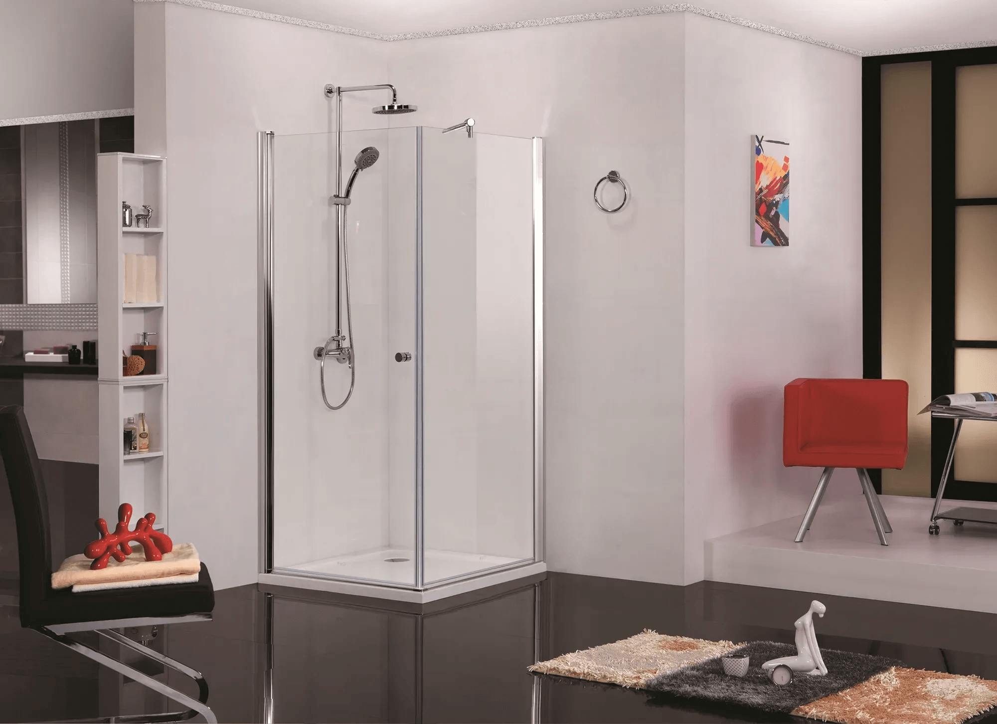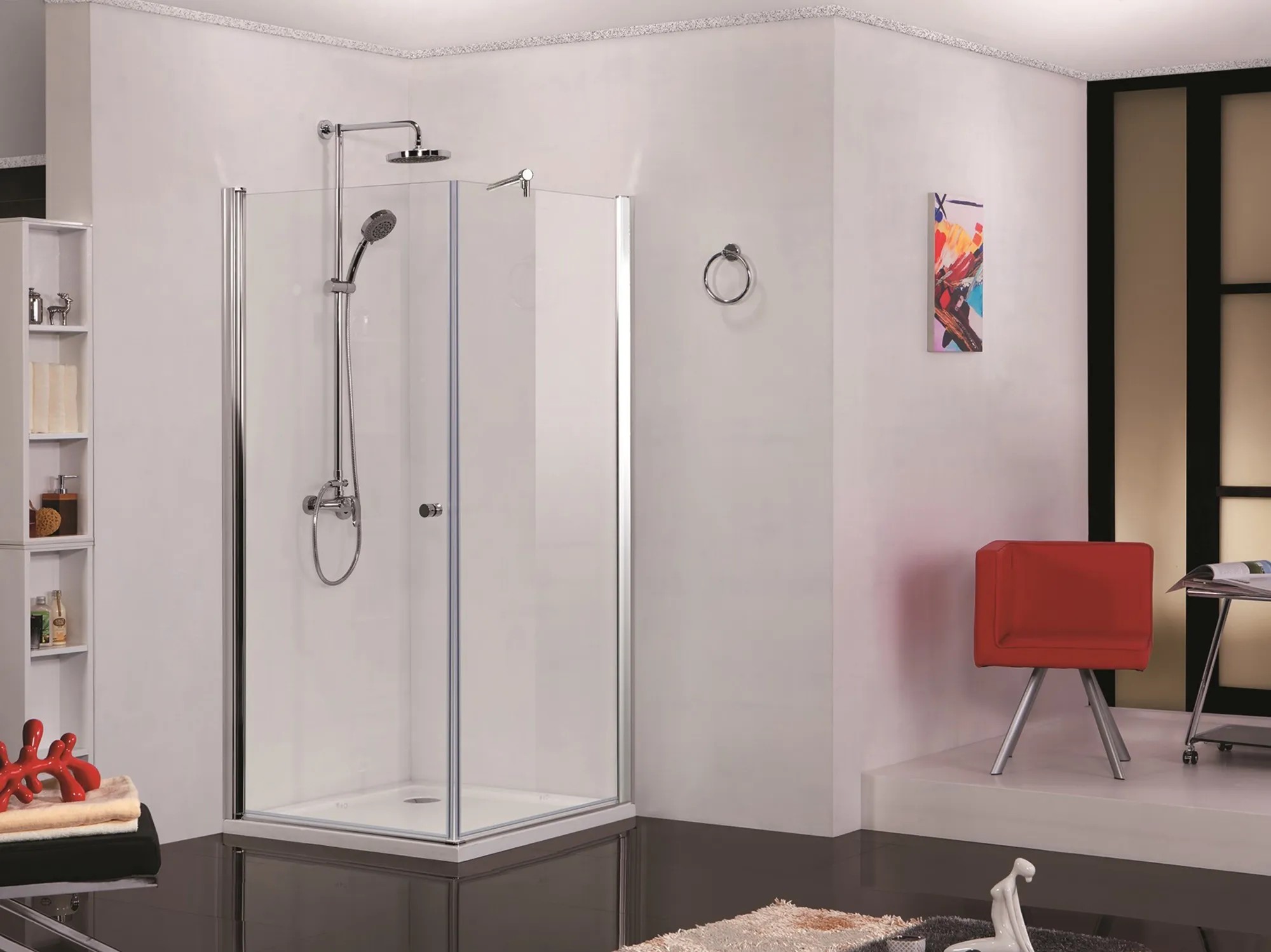 Sprchový kout bez vaničky Sanotechnik Elegance s dvojitými otočnými dveřmi je vyroben z 6 mm silného bezpečnostního skla. Chromované nástěnné profily lze nastavit v rozsahu 2 cm, tím je při montáži zajištěna větší flexibilita a můžete tak jednoduše vyrovnat šikmé stěny. Otočné dveře je možné umístit tak, aby se otevíraly dovnitř nebo ven, díky čemuž je možné kout použít i v malých koupelnách. Kout je možné instalovat pro otevírání vpravo nebo vlevo. Panty se zdvihovým mechanismem se při otevírání nadzvednou a při zavírání klesnou, díky čemuž je zajištěna vysoká těsnost koutu. Sprchový kout je možné položit i na podlahu a není tudíž vyžadována instalace na sprchovou vaničku.