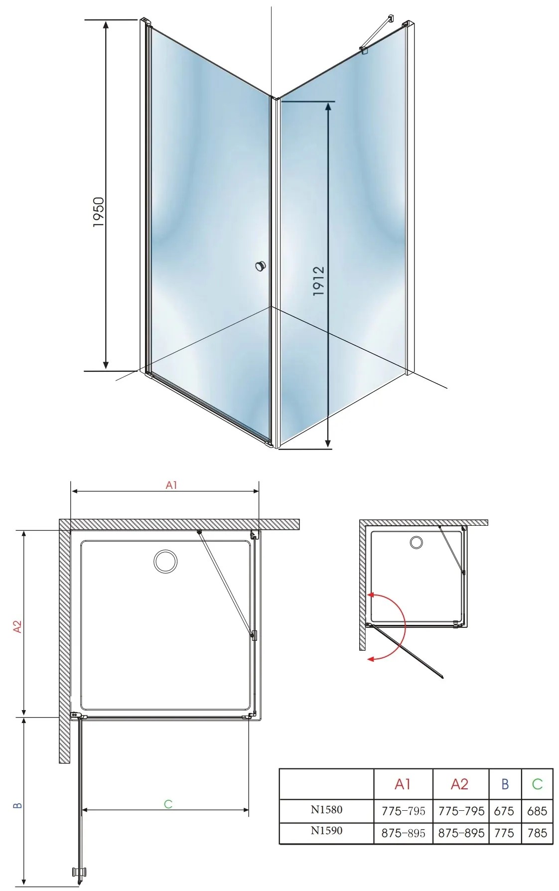 Sanotechnik Sprchový kout bez vaničky Elegance N1580, chrom, 80 x 80 x 195 cm