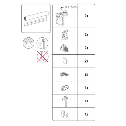 Rolety Gardinia EasyFix Uni mají průměr návinu 18 mm a boční řetízkové ovládání s možností volby ovládání na pravé či levé straně. Rolety se instalují pomocí upínacích držáků přímo na okenní křídlo, lepením nebo případně šroubováním. Montáž pomocí upínacích držáků je možná pouze na okna a s gumovým těsněním. Rozsah nastavení držáku je cca 15-22 mm (součástí balení).