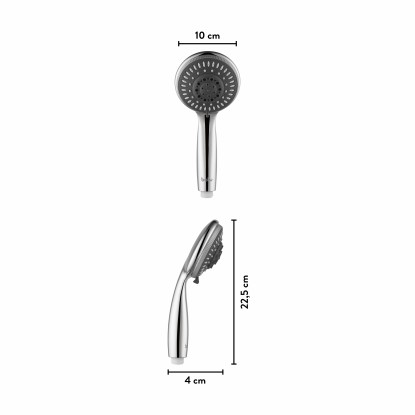 Ruční sprcha pochromovaná, antracitová s 5 řežimi stříkání. S nopkami proti usazování vodního kamene, pro rychlé a jednoduché čištění. Vhodná pro všechny standartní sprchové hadice.