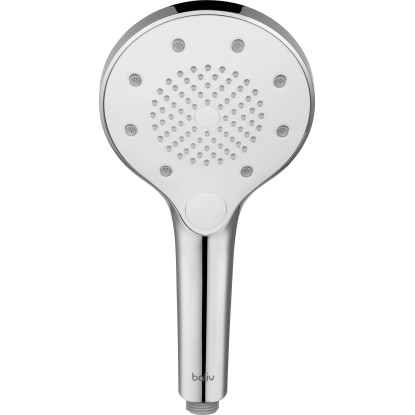 Ruční sprcha s tlačítkem, pochromovaná, bílá se 3 režimi stříkání. S nopkami proti usazování vodního kamene, pro rychlé a jednoduché čištění. Vhodná pro všechny standartní sprchové hadice.