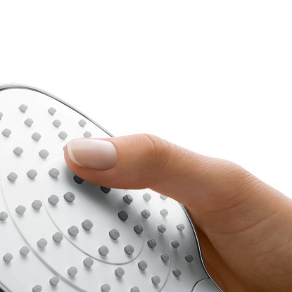Kdo rád uklízí? Díky funkci proti usazování vodního kamene Hansgrohe QuickClean odstraníte vodní kámen usazený na silikonových tryskách sprchových hlavic a baterií rychle a snadno setřením.