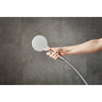 Ruční sprcha Hansgrohe Crometta Vario disponuje dvěma typy proudu. Dostatečně plný typ proudu Rain (déšť) nabízí osvěžující a energizující každodenní požitek ze sprchování. Tento typ proudu s malými vývody na sprchové hlavici účinně slouží k důkladnému opláchnutí šamponu. Povzbuzující vodní proud IntenseRain smyje únavu a okamžitě navodí pocit čistoty a probuzení. Perfektní a rychlý způsob, jak se po celý nadcházející den cítit fit. Silný proud také snadno opláchne šampon z vlasů.