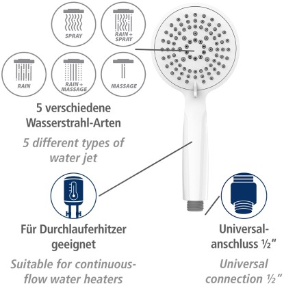 Wenko Ruční sprcha Young, 5 proudů, bílá, pr. 11 cm