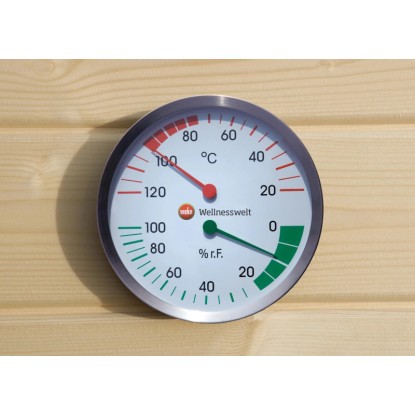 S tímto měřičem klimatu můžete v sauně kontrolovat teplotu a vlhkost vzduchu - pro příjemné klima.