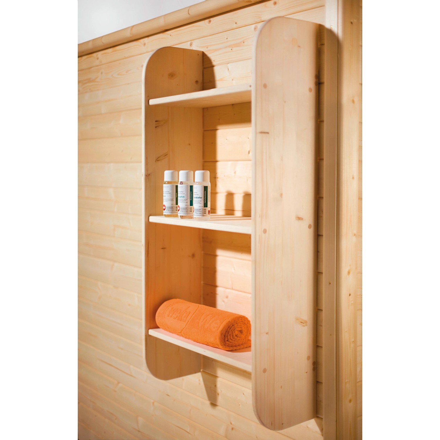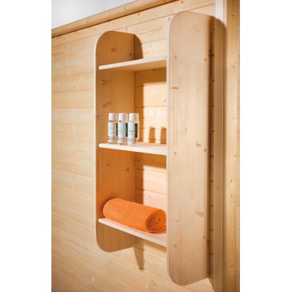 Ať už se jedná o ručníky, masážní kartáč nebo tělové mléko: Praktický regál na skříně značky Weka poskytuje úložný prostor pro vaše oblíbené wellness pomůcky. Skládá se ze tří přihrádek a lze jej upevnit do vaší sauny nebo infračervené kabiny. Ručníky apod. tak máte vždy po ruce.