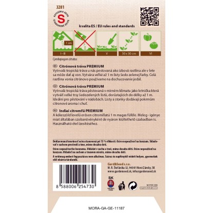 Vytrvalá tropická tráva pěstovaná v mírném klimatu jako letnička která vytváří velké trsy šedozelených listů, dorůstajících do délky až 1 m. Ideální pro pěstování v nádobách. Listy a stonky dodávají pokrmům citrónové aroma a chuť.