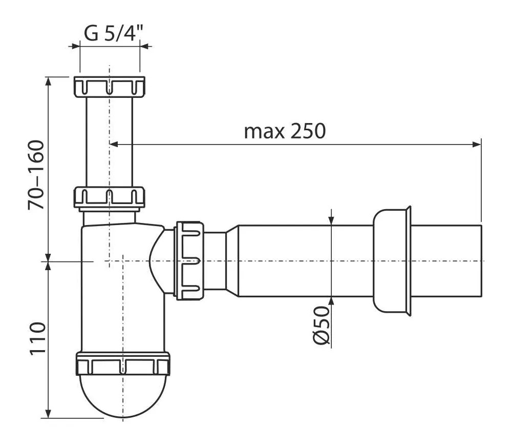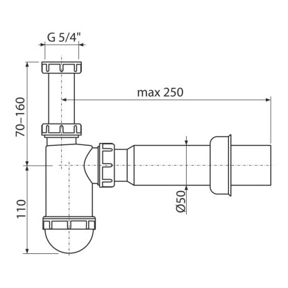 Alcadrain Sifon umyvadlový DN50 s převlečnou maticí 5/4"