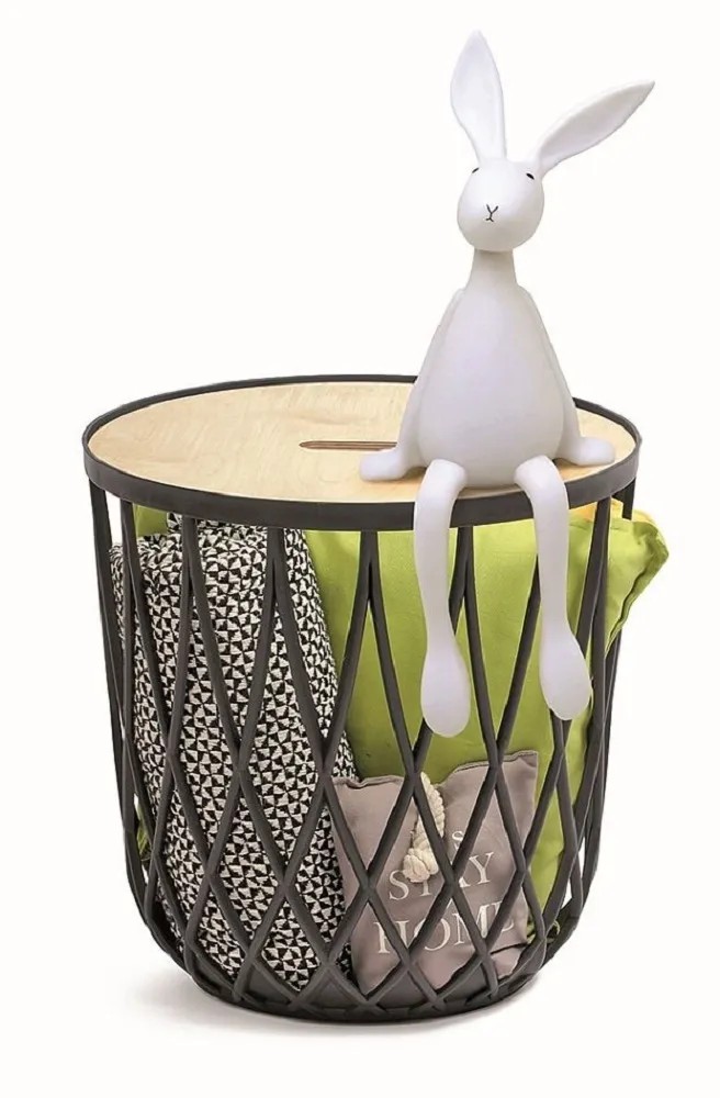 Multifunkční prolamovaný plastový nábytkový koš s dřevěným víkem s mnoha možnostmi využití. Skvěle zapadne do moderního, minimalistického, skandinávského nebo loftového interiéru. Skvělé řešení pro balkon, terasu nebo zahradu, obývací pokoj, dětský pokoj, ložnici nebo i veřejné budovy.