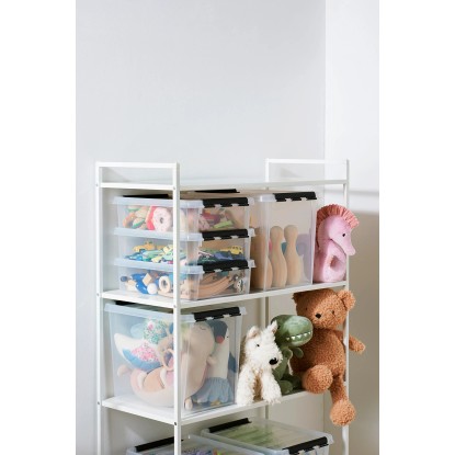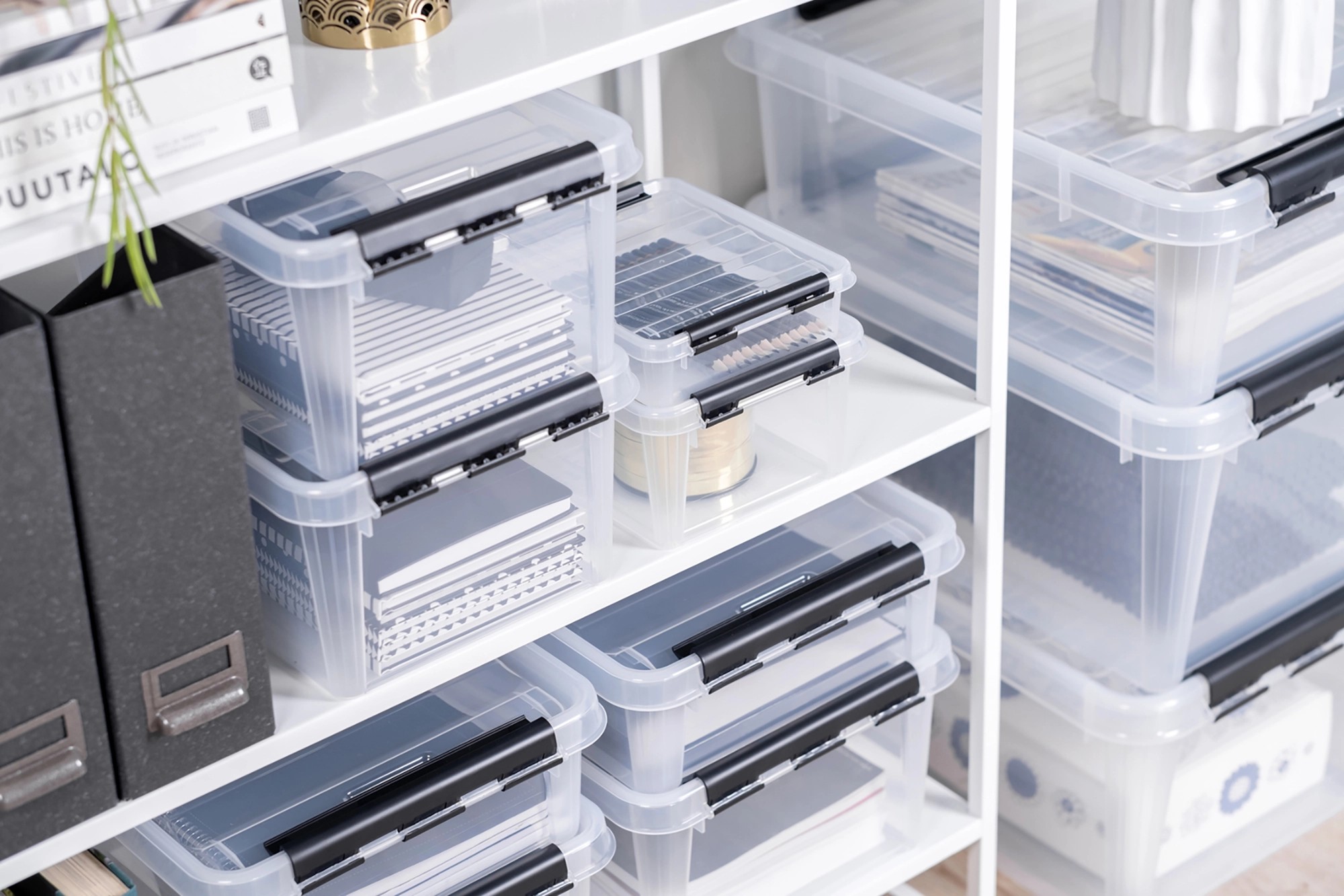 Základna tohoto 7,5litrového boxu má velikost dokumentu A4, takže je ideální pro ukládání souborů a časopisů doma nebo v kanceláři. Průhledný materiál usnadňuje rychlou identifikaci obsahu. Pevné klipy z recyklovaného plastu udržují víko pevně na místě. Boxy do sebe zapadají bez víka a s víkem je lze stohovat. Box SmartStore Classic 7,5 L je modulární se všemi boxy ve světle modrém barevném kódu; 0,3 L, 1,5 L, 4 L, 14 L a 25 L.