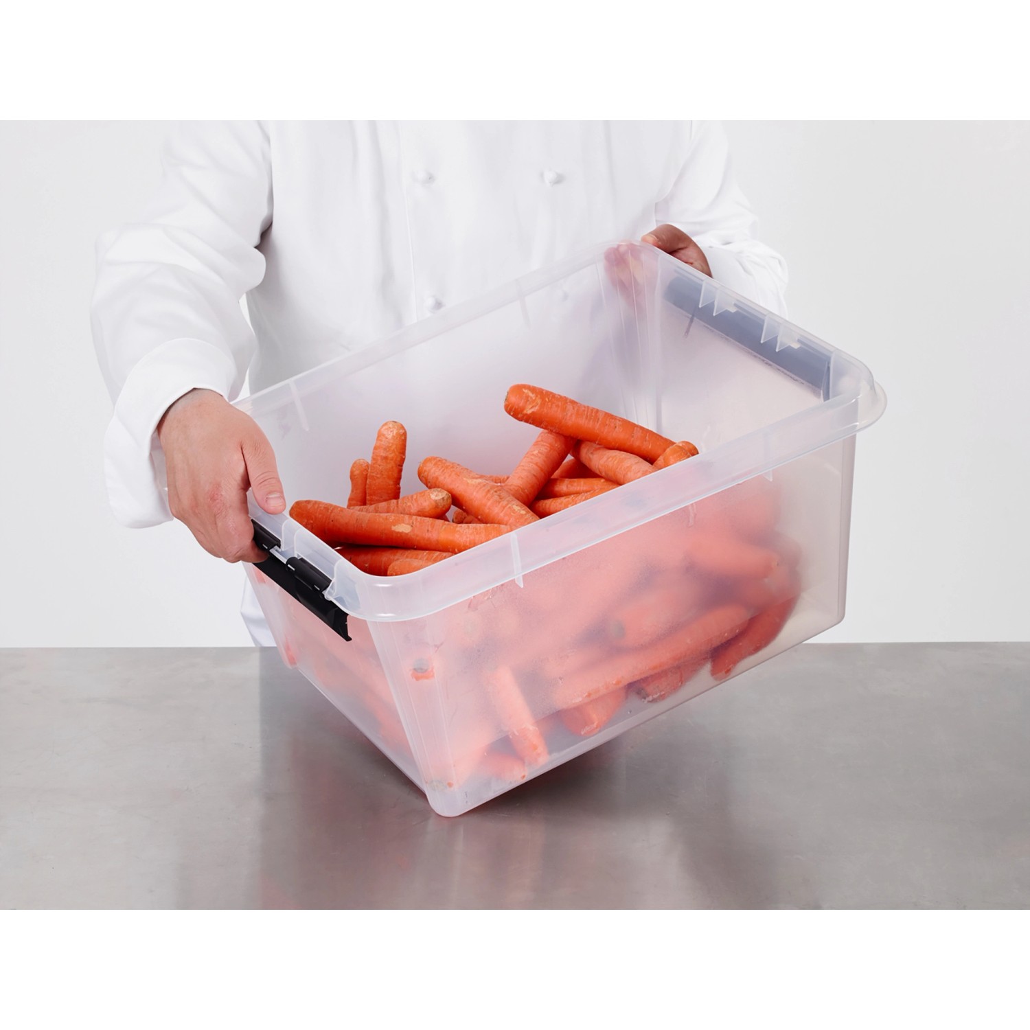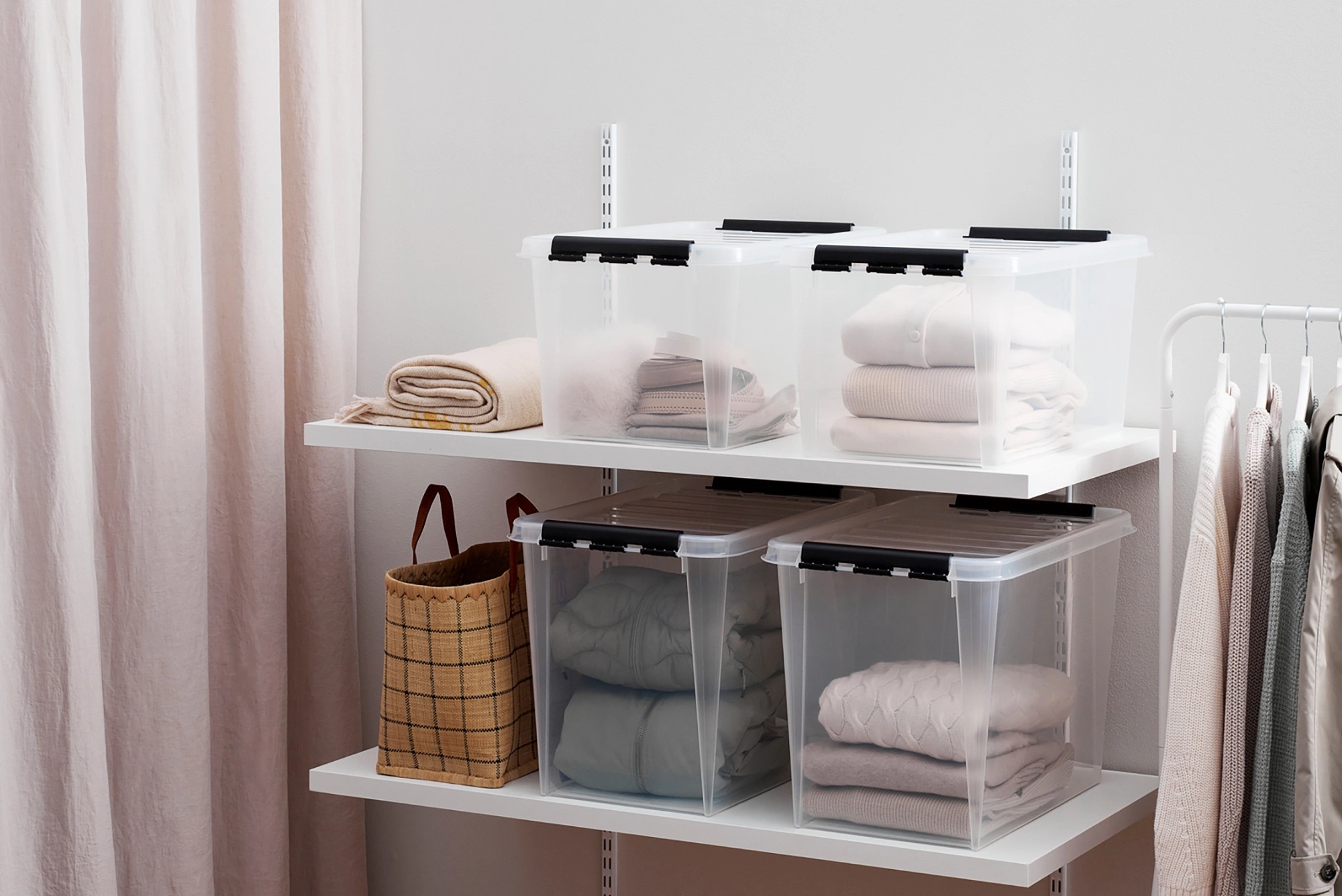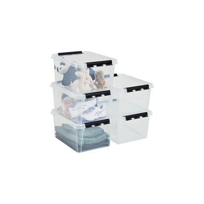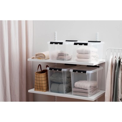 Tento 31litrový box je jedním z našich vůbec nejprodávanějších produktů. Je ideální pro skladování objemnějších věcí, jako je oblečení, deky, polštáře, nářadí a sportovní vybavení. Průhledný materiál usnadňuje rychlou identifikaci obsahu. Robustní klipy z recyklovaného plastu drží víko pevně na místě. Boxy do sebe zapadají bez víka a stohují se s víkem. Box SmartStore Classic 31 L lze stohovat s boxy Classic 20 L a 52 L.