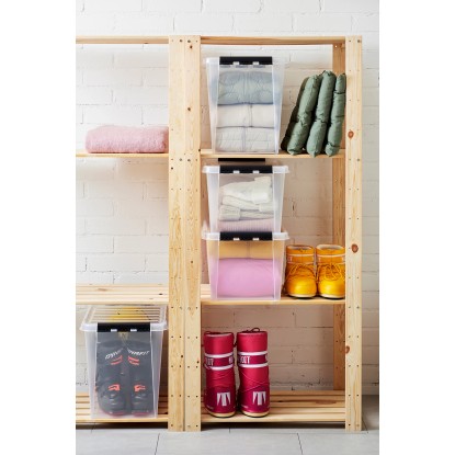 Tento prostorný 46litrový box je ideální pro ukládání větších předmětů, jako je venkovní vybavení, sezónní oblečení a další přikrývky. Průhledný materiál umožňuje snadno a rychle identifikovat obsah. Pevné klipy z recyklovaného plastu drží víko pevně na svém místě. Boxy do sebe zapadají bez víka a s víkem se dají stohovat. Box SmartStore Classic 46 L je stohovatelný s boxem Classic 66 L.