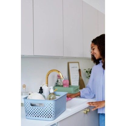 SmartStore Essence je řada moderních úložných košů. Díky lehkému a vzdušnému designu jsou tyto koše nutností pro každodenní skladování. Velký koš L je ideální pro ukládání oblečení, hobby předmětů, uměleckých a řemeslných potřeb, časopisů, hraček nebo jiných často používaných předmětů. Velikost je vhodná pro dokumenty A4. Koše mají rukojeti pro snadné zvedání a na výběr jsou různé moderní barvy. Vyrobeno ve Švédsku, z odolného recyklovaného plastu.