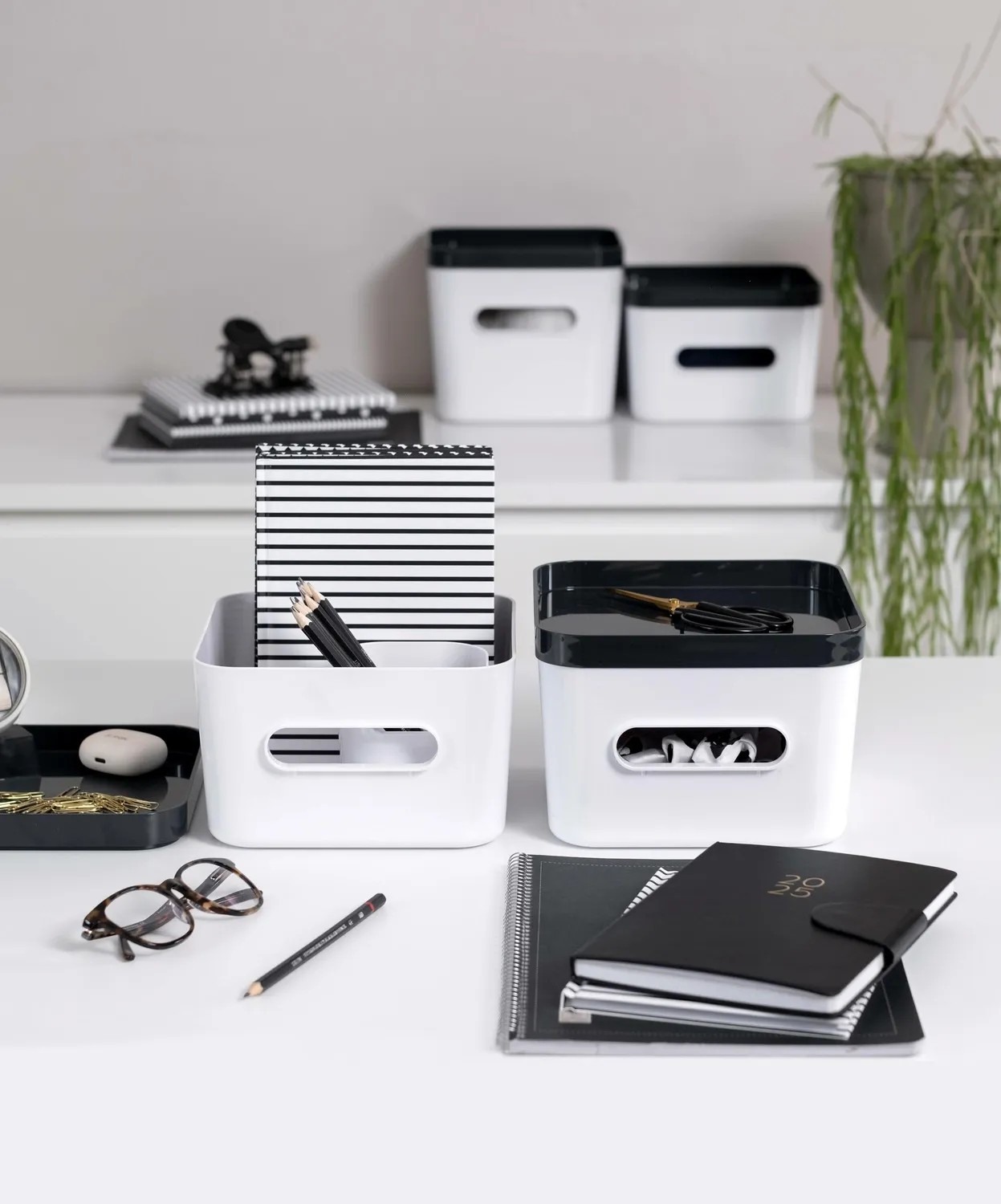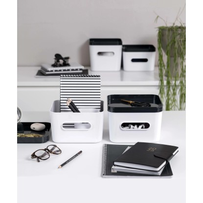 Nádoby SmartStore Compact Square jsou ideální pro všechny druhy malých úložných prostor v domácnosti. Optimalizujte své úložiště na pultech, v zásuvkách, na policích nebo ve skříních. Nádoby zapadají bez víka a stohují s víkem. Stejné víko funguje s velikostí Compact Clear Square M i L. Víko lze také použít jako takové, jako robustní podnos, ke shromažďování a ukládání malých předmětů na pultech a policích nebo v zásuvkách a skříních.