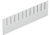 Dělicí přepážky z Eurobox systému slouží k rozdělení euroboxu se základním rozměrem 400 x 300 mm. Můžete tak dobře roztřídit malé předměty ve velkých boxech. Dělicí přepážky se dají vždy použít tak, aby vznikly různě velké sekce. Během sekundy je eurobox upravený podle vašich potřeb. Dělicí přepážky jsou k dostání ve čtyřech výškách. Dělicí přepážka se speciálním rozměrem navíc slouží k rozdělení zásuvek. Má výšku 5 cm a používá se zejména k rozdělení zásuvek na příbory. Tuto dělicí přepážku můžete několika málo úkony upravit podle velikosti zásuvky.