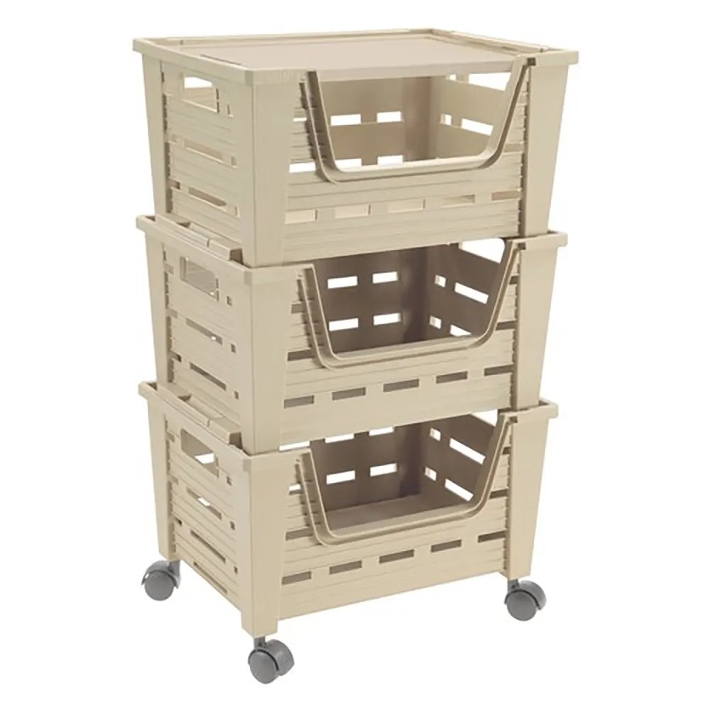 Pojízdné přepravky Tontarelli Eva 3 umožní přehledné uložení věcí. Využít je můžete v koupelně, komoře, garáži i ve sklepě. Vozík obsahuje 3 úložné prostory, do nichž uschováte celou řadu vybavení. Opatřená je kolečky, která zajistí její pohodlné přemísťování, a víkem.