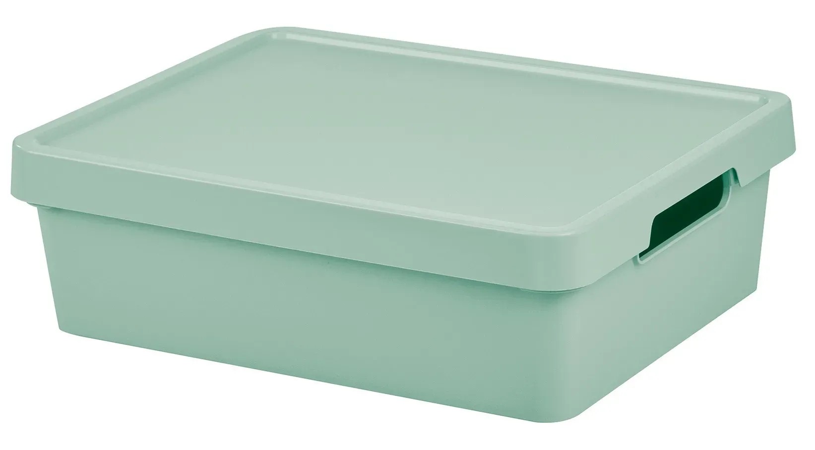 Tontarelli Úložný box MAYA M s víkem šalvějová zelená, 36 x 28 x 11 cm, 9,2 l