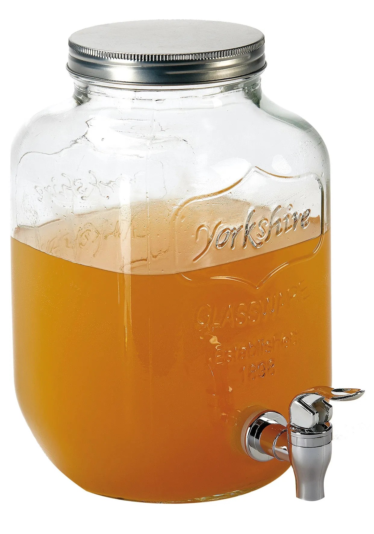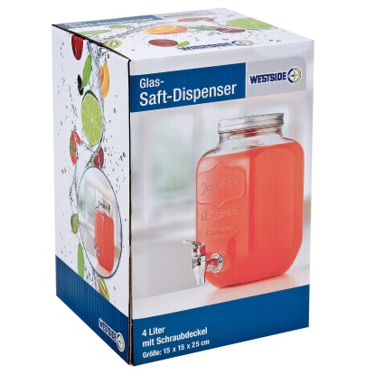 Skleněný zásobník na šťávy se šroubovým uzávěrem. Objem 4 l.