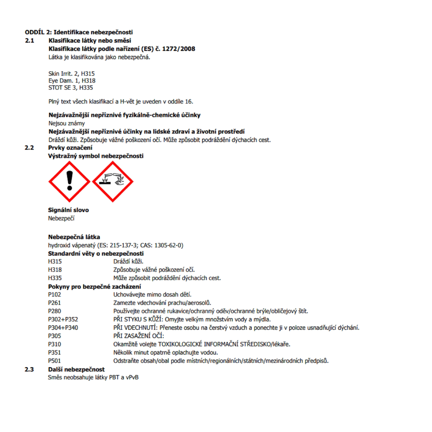 Údaje výrobce