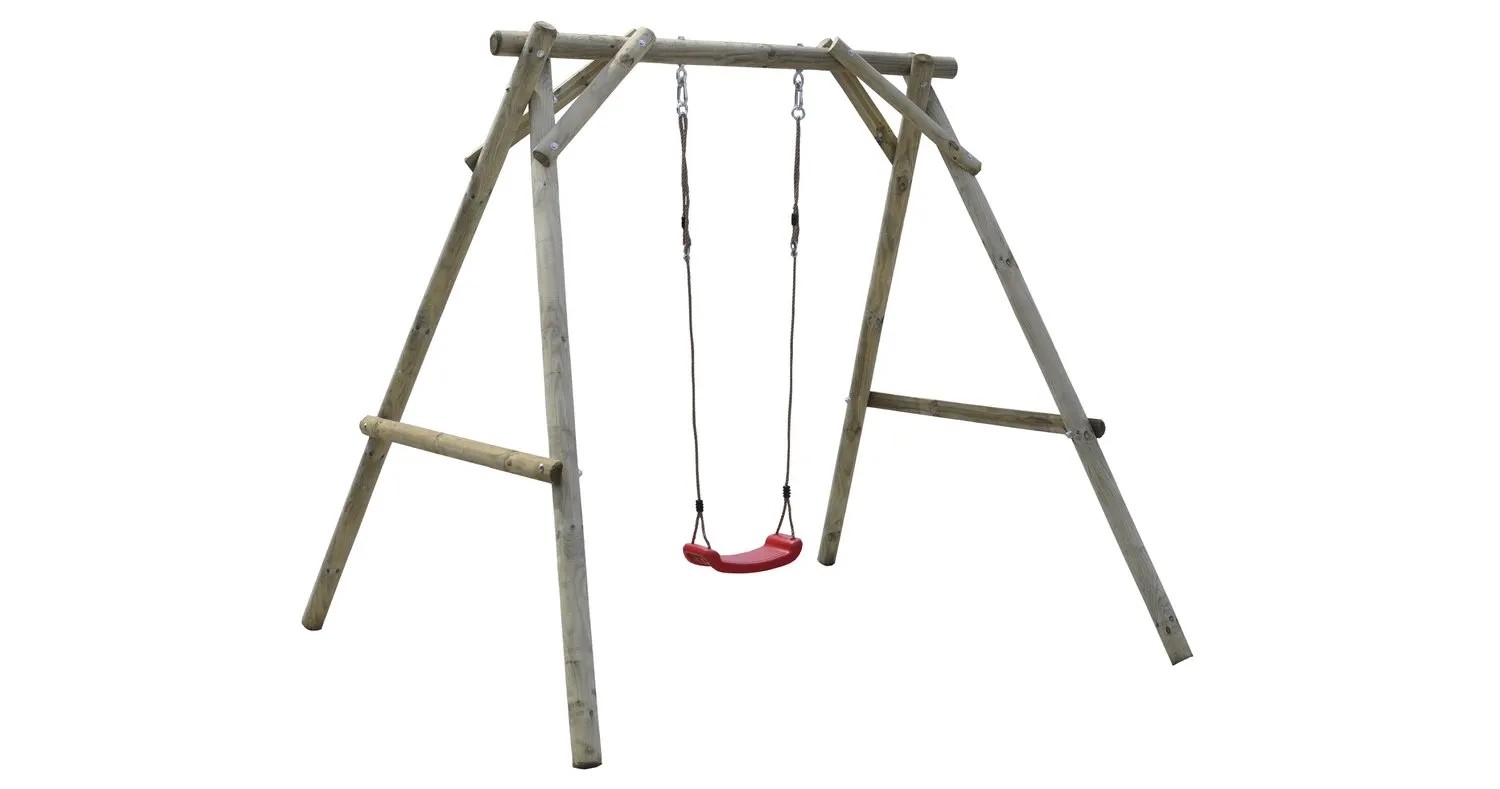Jednomístná houpačka je vyrobena ze dřeva. Dřevo je impregnované, čímž je zajištěna jeho dlouholetá ochrana. Jednomístná houpačka má plastové sedátko a dva háky na zavěšení sedátka. Houpačka je určená pro domácí venkovní použití a je vhodná pro děti od 3 let. Je dodávána s montážními díly a pokyny. V dodávce ovšem není montážní příslušenství pro upevnění do půdy.