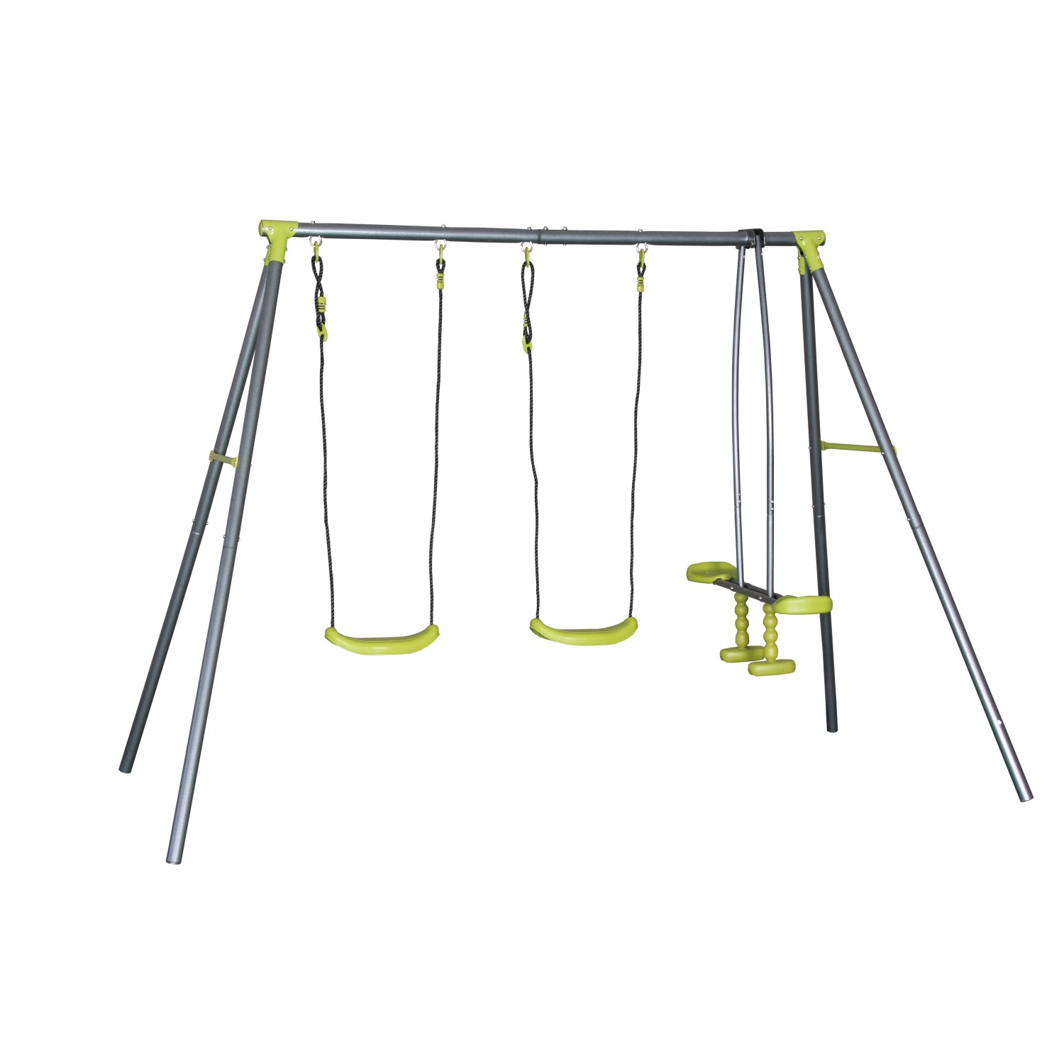 Kvalitní dětská houpačka určená až pro 4 děti (2 x jednotlivá houpačka, 1 x houpačka pro dvě děti). Vyrobeno z kvalitní práškové oceli.