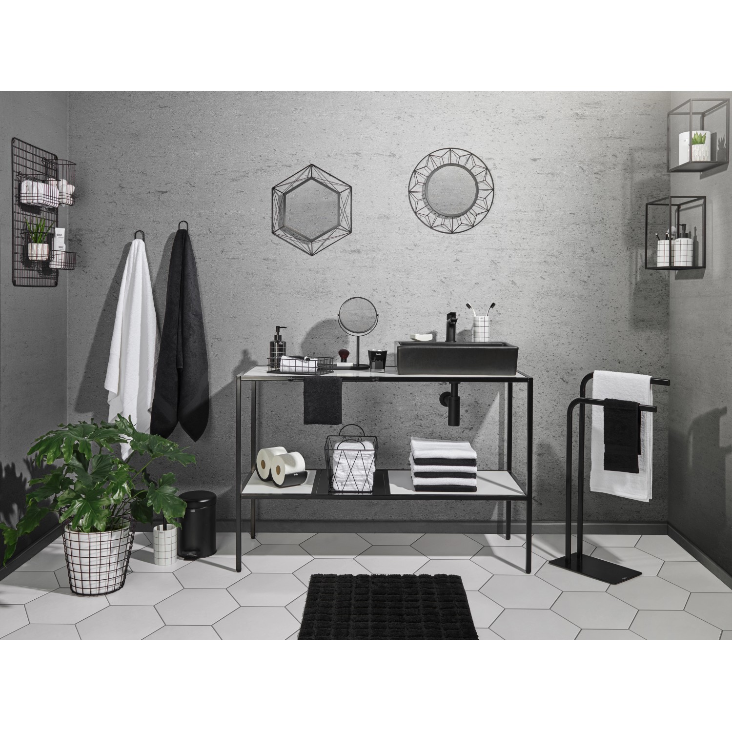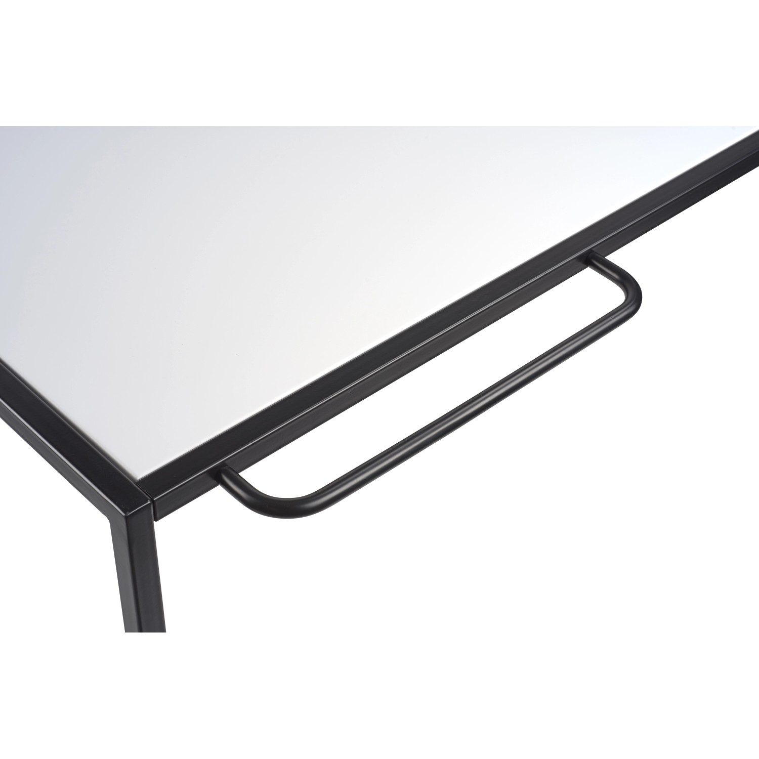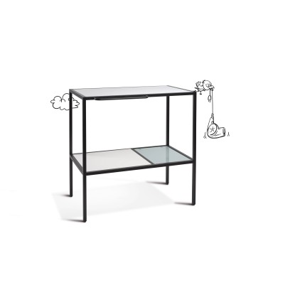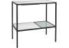 Skříňka pod umyvadlo na desku Baliv je díky kombinaci bílé a černé barvy nezbytností do industriálně zařízené koupelny. Dvě police ze skla a dřeva pomůžou úložný prostor rozdělit a zajistit tak pořádek v koupelně. Držák na přední straně je ideální na sušení mokrých ručníků pro hosty.