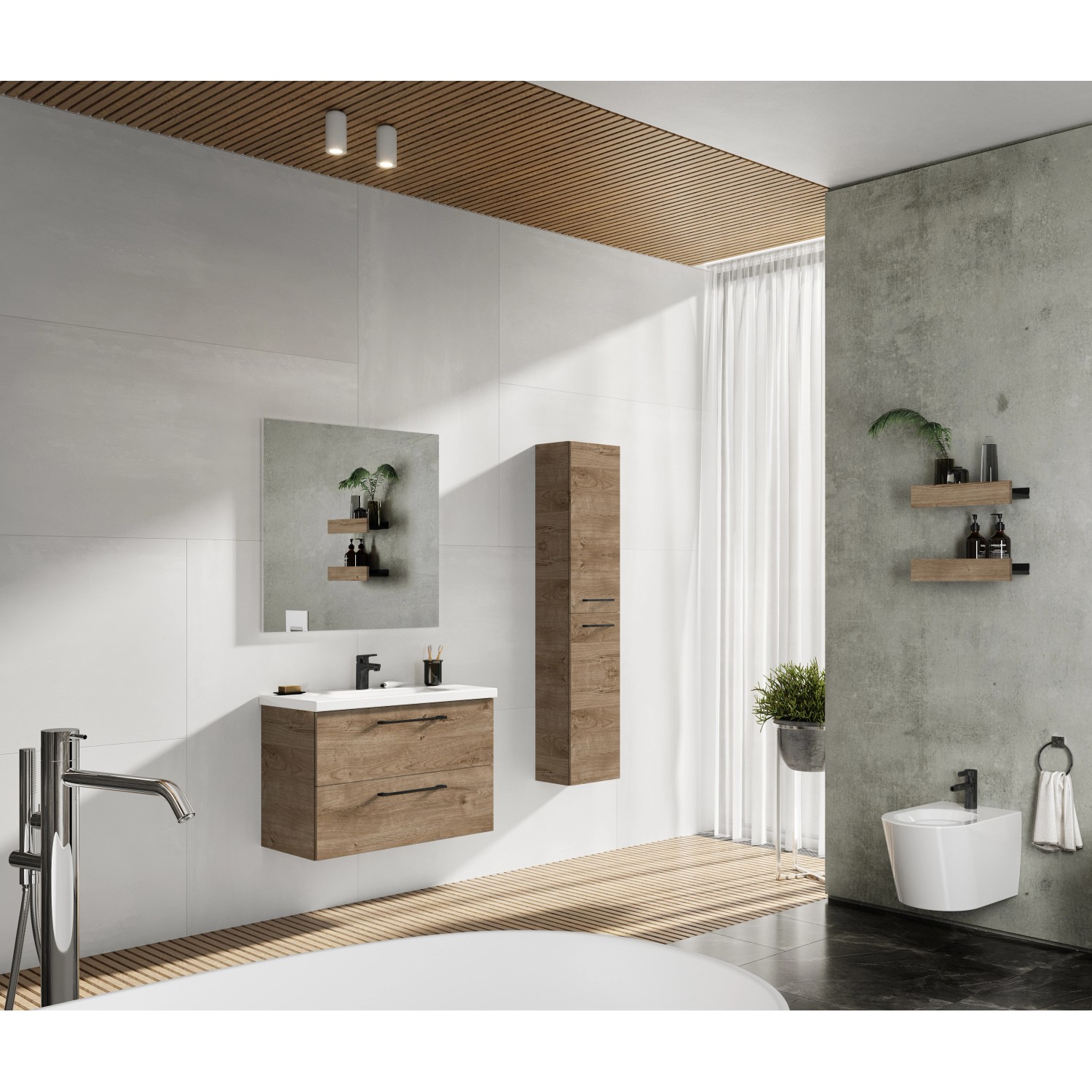 Skříňka nabídne spoustu úložného prostoru na vaše ručníky, koupelnové a kosmetické potřeby. Skříňka má dvě prostorné zásuvky s výřezem na sifon a přihrádkou na kosmetiku. Praktickým detailem je zavírání SoftClose, díky kterému se zásuvky zavřou jemně a tiše. Skříňku zvládnete sestavit sami během chvilky.