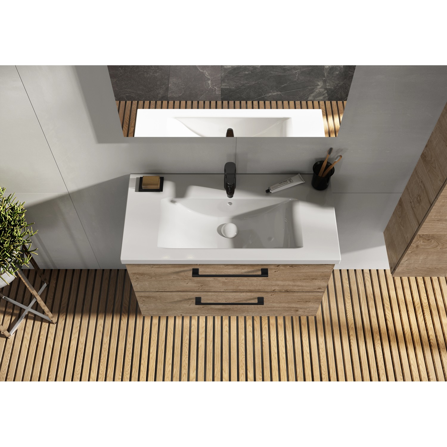 Umyvadlo, umyvadlová baterie ani další dekorace nejsou součástí balení.