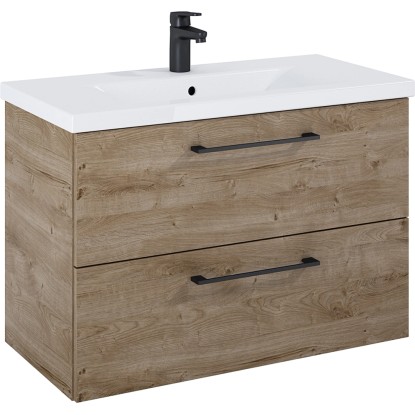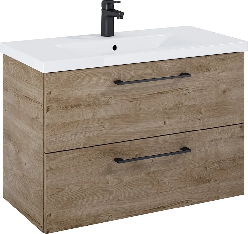 Maximus Skříňka pod umyvadlo Cheese, 2 zás., dub Canela + černé úchytky, 80 cm