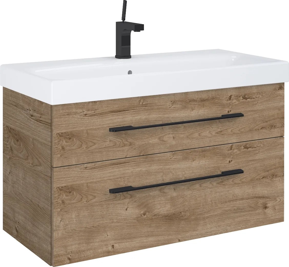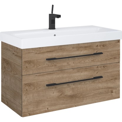 Maximus Skříňka pod umyvadlo Madrid, 2 zás., dub Canela + černé úchytky, 100 cm