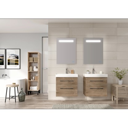 Skříňka nabídne spoustu úložného prostoru na vaše ručníky, koupelnové a kosmetické potřeby. Skříňka je dodávána předmontovaná a má dvě prostorné zásuvky s výřezem na sifon a přihrádkou na kosmetiku. Praktickým detailem je zavírání SoftClose, díky kterému se zásuvky zavřou jemně a tiše.