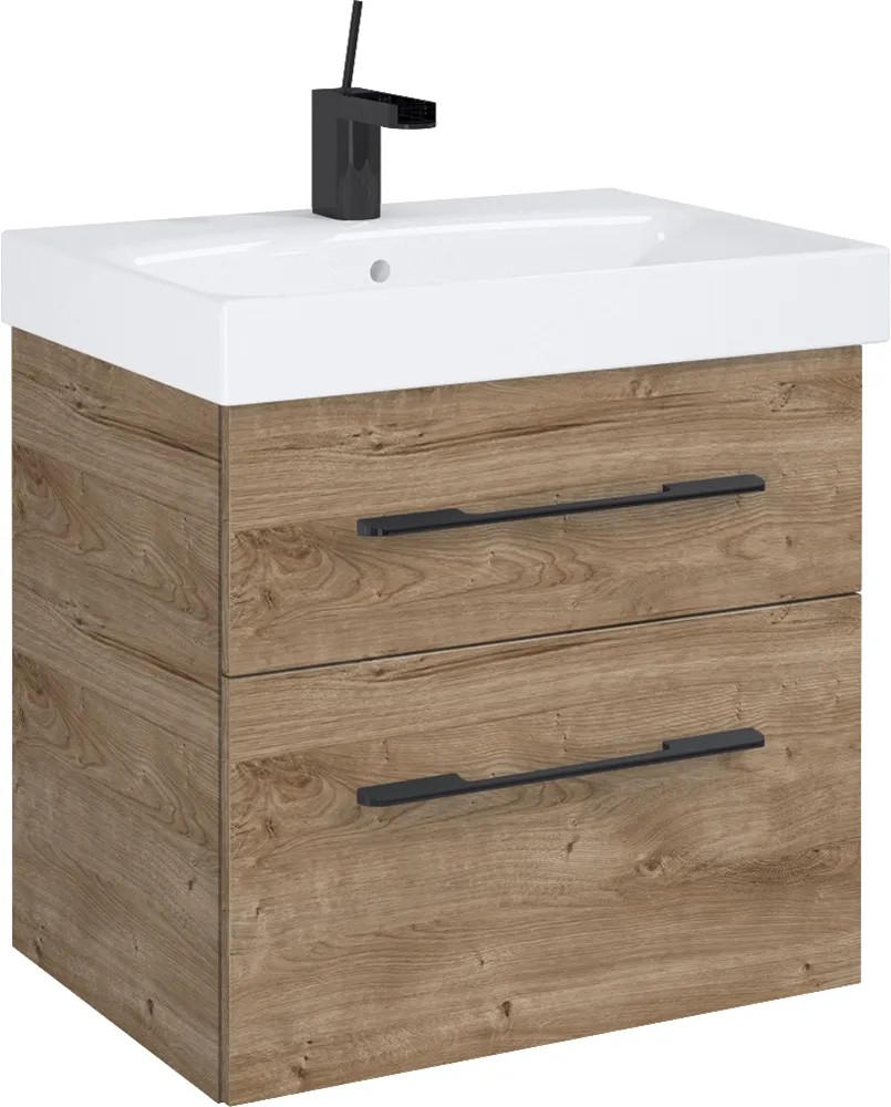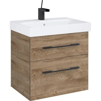 Maximus Skříňka pod umyvadlo Madrid, 2 zás., dub Canela + černé úchytky, 60 cm