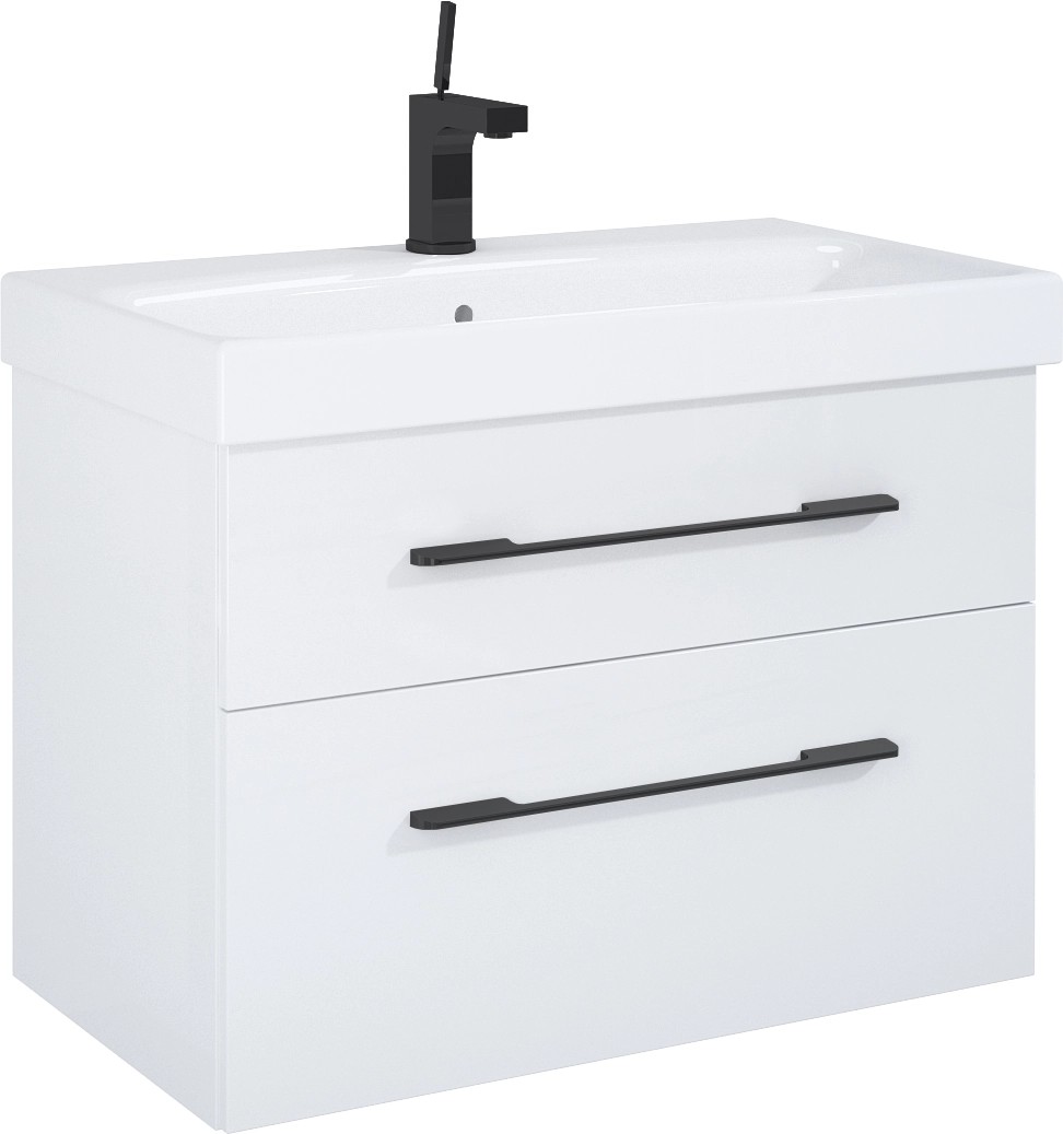 Maximus Skříňka pod umyvadlo Madrid, 2 zás., matná bílá + černé úchytky, 80 cm