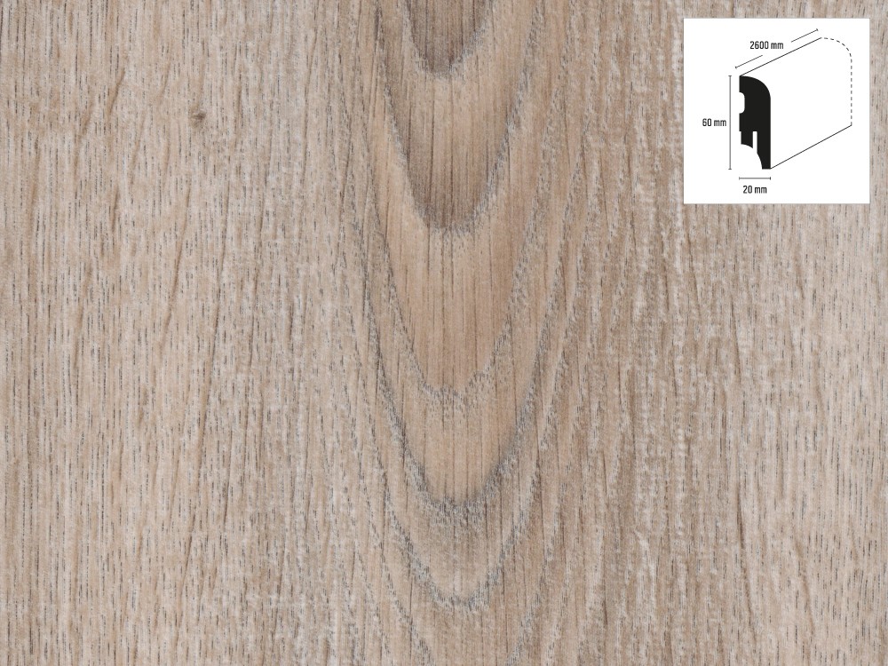 Soklová lišta dub stříbrný 60 mm x 20 mm délka 2600 mm
