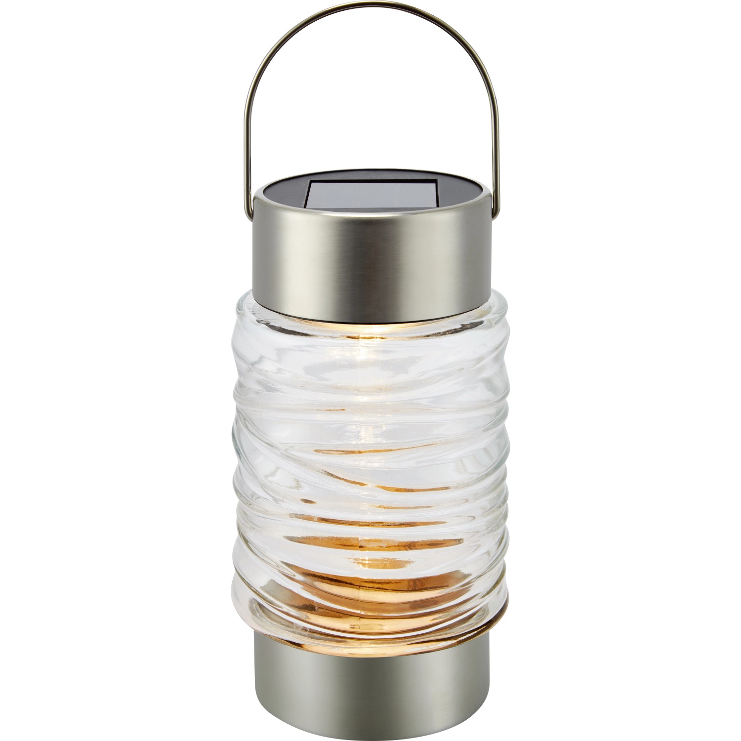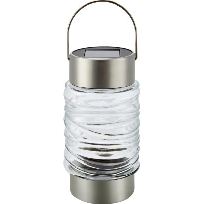 Solární svítidlo lze použít jako působivé venkovní osvětlení. Lze jej umístit na zahradní stůl nebo vedle květináče. Svítidlo je vyrobeno ze směsi skla a nerezové oceli ve stříbrné a průhledné barvě. Díky modernímu designu a atraktivní povrchové struktuře upoutá pozornost v každé zahradě. V souladu se stupněm krytí IP44 je svítidlo chráněno proti stříkající vodě. Výška činí 16 cm a průměr 8,5 cm. Zahradní svítidlo je opatřeno LED teplé bílé barvy. Díky praktickému uchu jej lze snadno přepravovat nebo zavěsit.