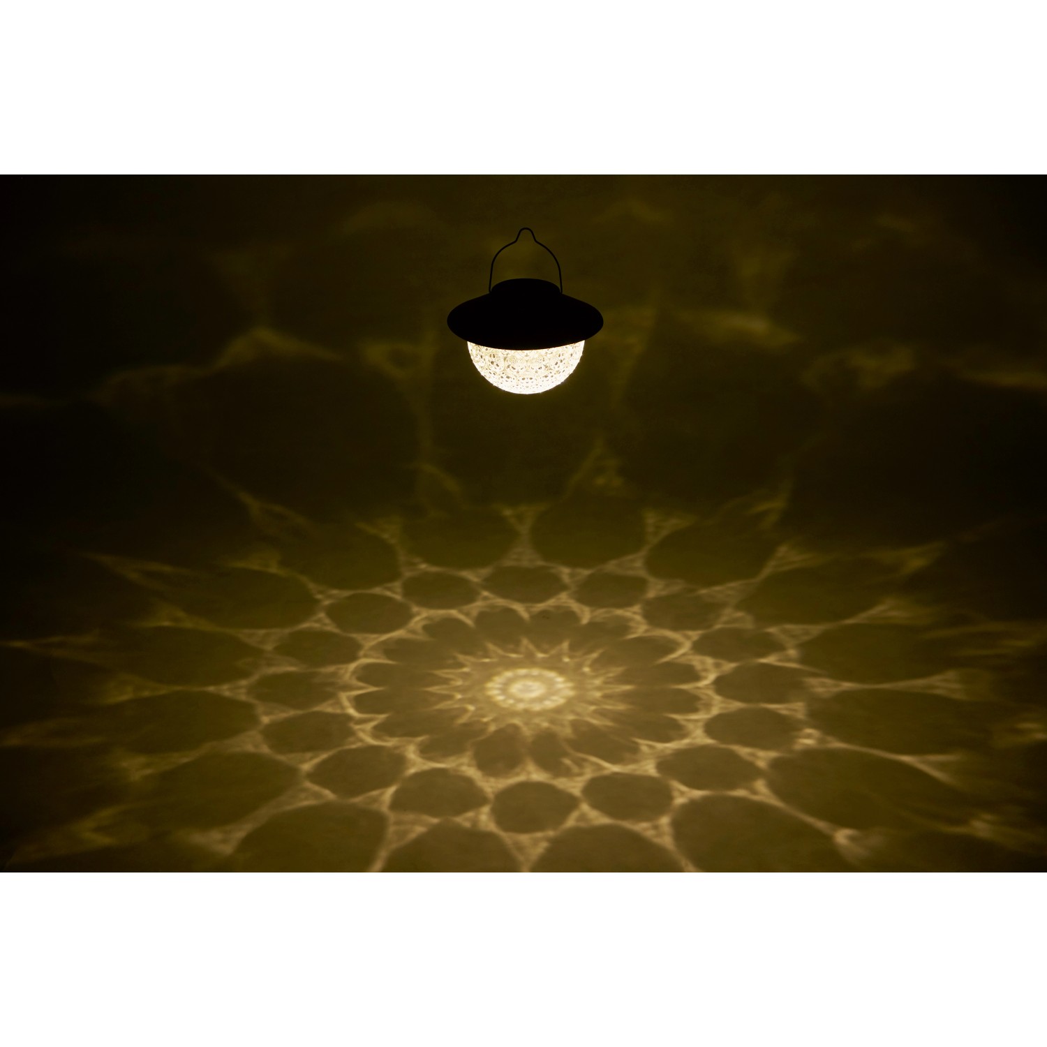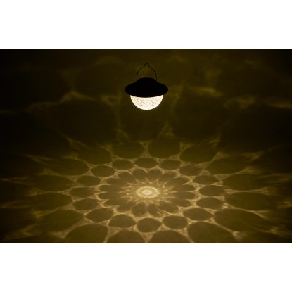 Solární závěsné LED svítidlo s šarmantním designem lucerny propůjčí vašemu venkovnímu prostoru zvláštní nádech. Stínidlo s matným povrchem upoutá veškerou pozornost a vytváří svěží akcenty. Svítidlo má kompaktní rozměry a je opatřeno praktickým třmenem pro zavěšení, takže ho můžete flexibilně umístit na větve, háčky nebo pergoly. Kulaté osvětlovací těleso se strukturovaným kruhovým vzorem vytváří za soumraku nádherný a působivý světelný vzor, který ponoří vaše okolí do teplé a pohostinné atmosféry.
