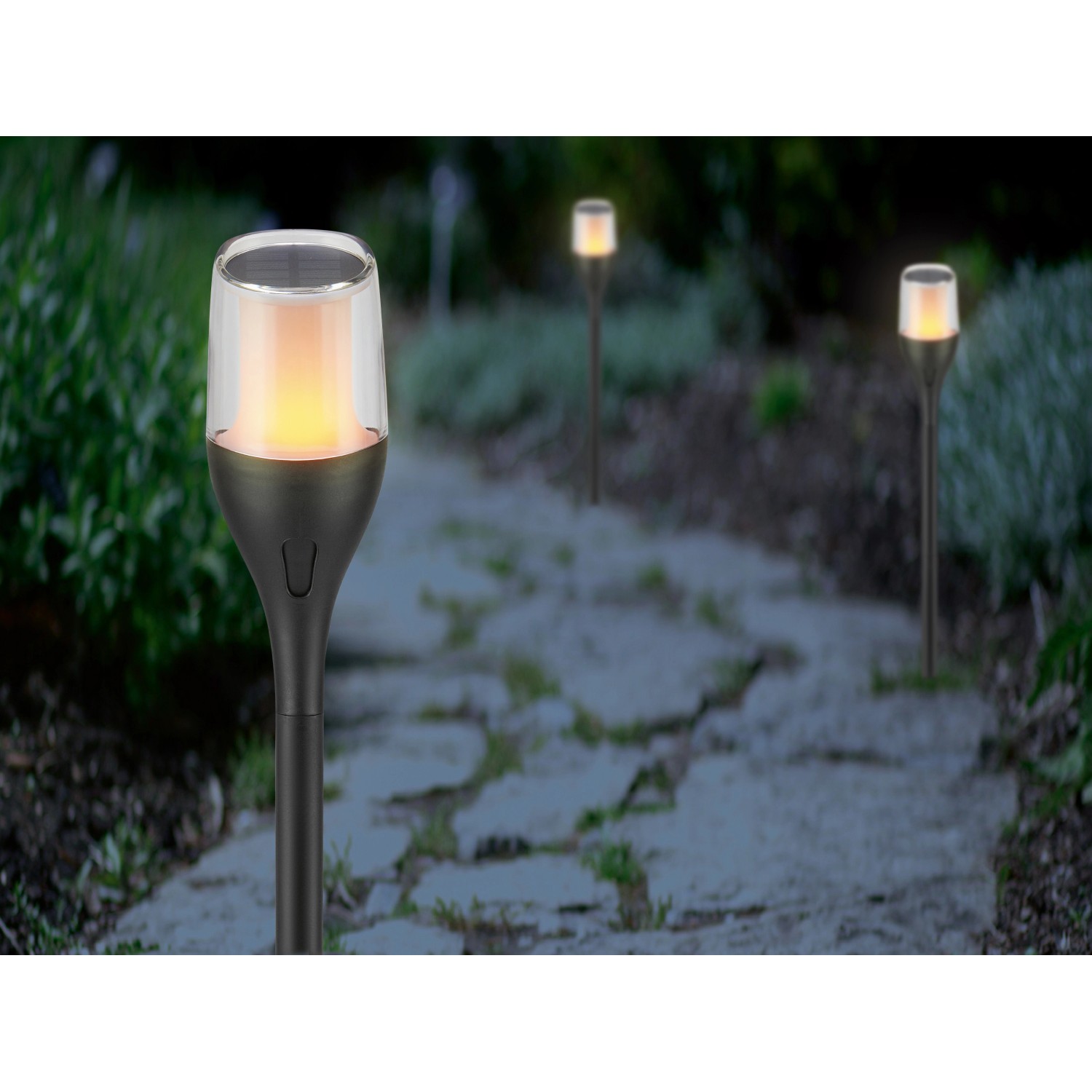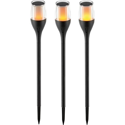 S tímto LED solárním svítidlem vytvoříte ve své zahradě útulnou atmosféru. Díky 12 pevně zabudovaným LED diodám jantarové barvy, jež vytvářejí realistický efekt plamenů, vytvoříte okamžitě teplou a pohostinnou atmosféru. Svítidlo je vyrobeno z robustního plastu a má stupeň krytí IP44, takže jej můžete bez obav používat venku. Integrovaný akumulátor se přes den nabíjí prostřednictvím solárního panelu a v noci vyzařuje několik hodin působivé světlo. Díky přiloženému zemnímu bodci se svítidlo instaluje upevněním do země. Díky tomu jste flexibilní při umístění a můžete svítidlo použít přesně tam, kde ho potřebujete. Díky rozměrům cca pr. 7,5 cm x 64,5 cm se harmonicky začlení do vašeho venkovního prostoru. Ať už jako pohostinné osvětlení zahradní cestičky nebo jako působivý atraktivní prvek na terase, toto LED solární svítidlo skutečně upoutá pozornost.