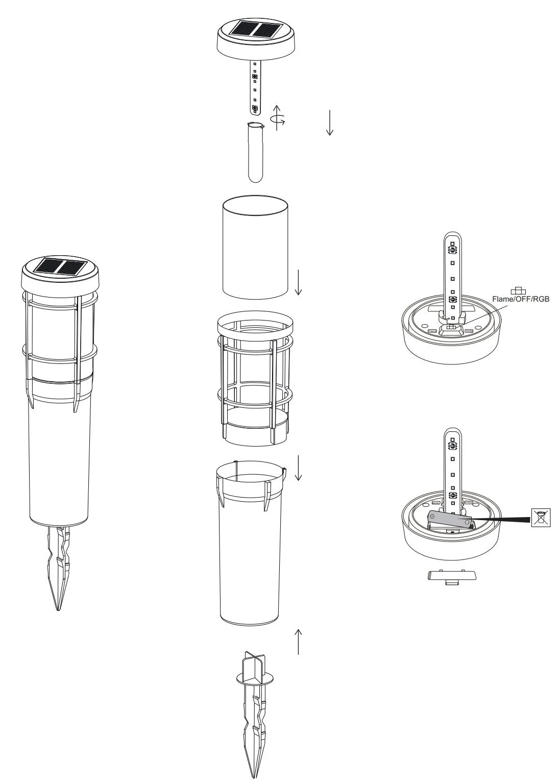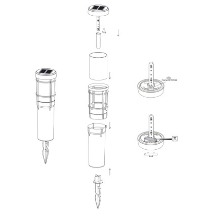 Solární svítidlo s bodcem z robustního plastu, zapíchnete do zahrady nebo výsadbových nádob jednoduše, všude tam kam potřebujete. Se svým stupněm krytí IP44 vytváří svítidlo příjemnou atmosféru ve venkovním prostoru. Je opatřeno 1 x LED 0,2 W se změnou barev RGB. Je vybaveno akumulátorovou baterií 1 x AA Ni-MH 1,2V 900 mAh, která se nabíjí slunečním zářením. Jakmile se setmí, svítidlo začne svítit.
